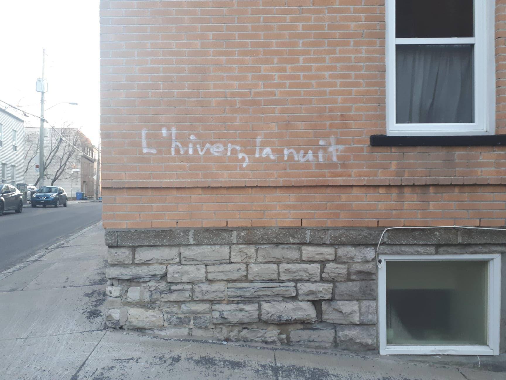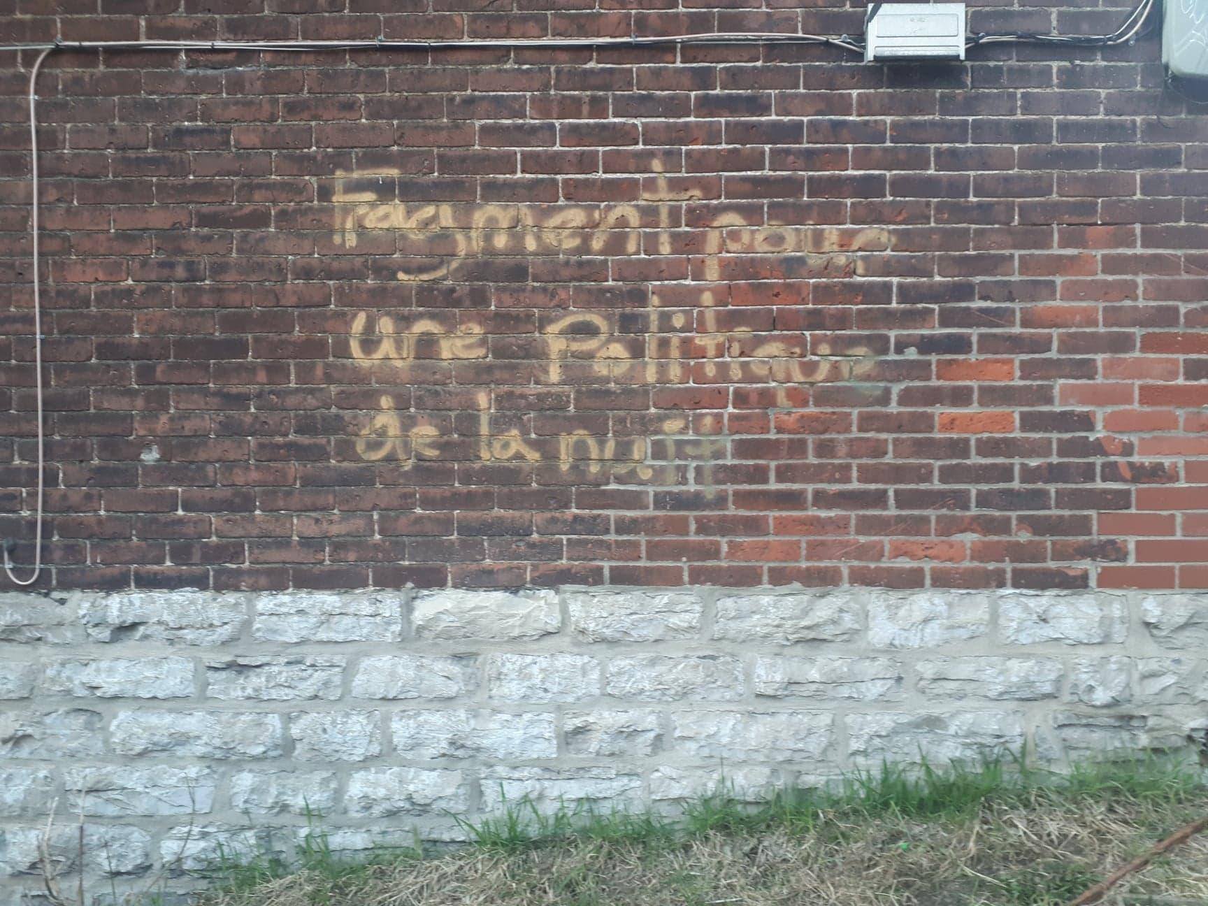 Pour peu, il serait fort pertinent de réfléchir à l’espace que la nuit investit dans nos imaginaires, tout comme les déclinaisons que celle-ci peut prendre dans le capitaliste et spectaculaire ‘’présent’’. Pour moins encore, il serait d’autant plus saugrenu de poser la question de la circulation des affects et de la création de nouvelles temporalités, de nouvelles communautés durant la nuit. De fait, sous l’égide éblouissante du tout marchand, sous l’injonction ad nauseam du dépassement et de la performance de soi, la nuit se fait rapidement réapproprier pour agir tel le jour. À défaut d’être un milieu de repos pour qu’adviennent autrement les choses, c’est soudainement un autre espace d’épuisement, de flux incessant d’images et d’accumulation de capital symbolique qui vient stroboscober la basse-ville. Nous pensons ici à la Nuit Blanche ou encore, plus actuellement, au festival SOIR. Si pour certain ce rapprochement nominal ne serait que de l’ordre d’un léger jeu de mots, en guise de contre-exemple, mentionnons ici différents collectifs critiques tels que le Consejo Nocturno ou encore le Collectif de minuit. Du Mexique au Québec, il réside donc dans l’espace de la nuit quelque chose qui résiste au jour, l’affronte, qui n’appartient qu’à ce moment; où l’ombre inéluctablement voile. Ainsi, par ce texte, nous tenterons de souligner ce qui peut apparaître dans l’obscure, de ce qui se dévoile en se voilant, dans ce moment de prédilection des jeux du chat et de la souris, des méfaits, des vitres cassées et de l’anonymat.